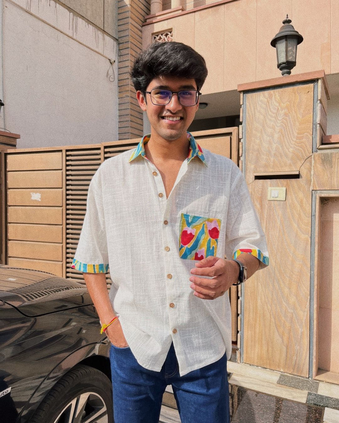Add a splash of playfulness to your wardrobe with the Rainbow Thread shirt. Designed with...