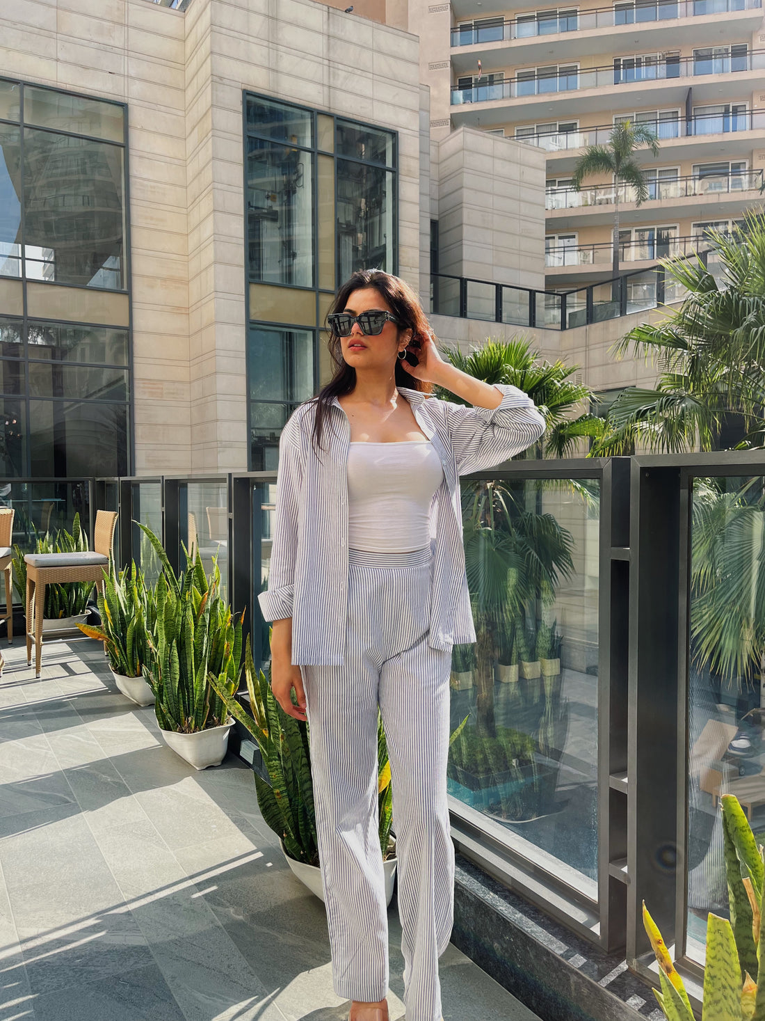 Minimal yet chic, this navy pinstriped co-ord set is the definition of classic meets comfort....