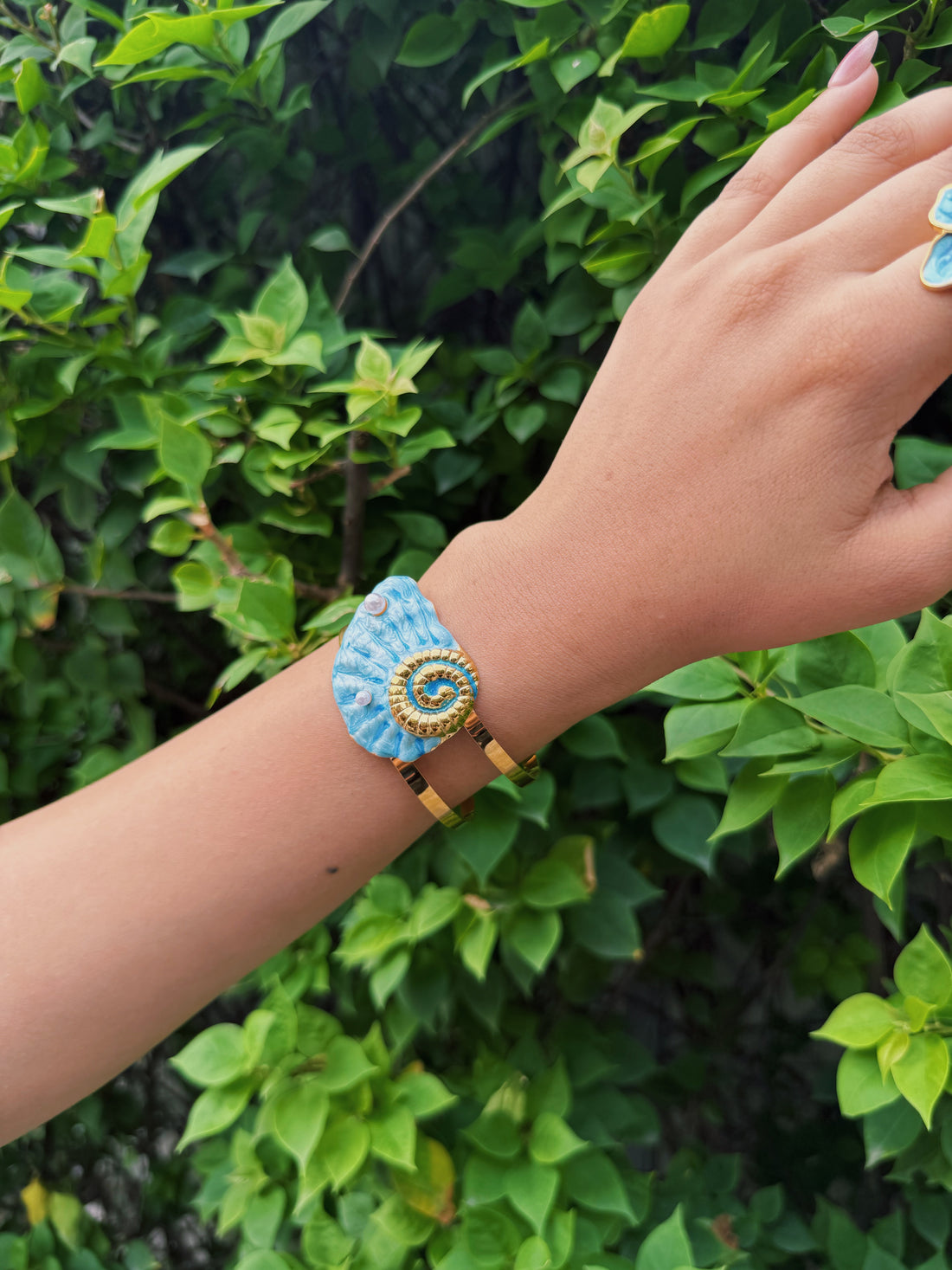 Elevate your style with this statement cuff, featuring intricate detailing, a radiant gold finish, and...